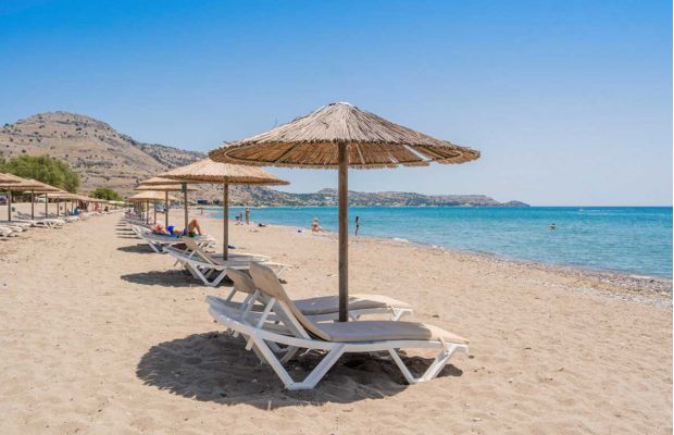 Plaża piaszczysto-żwirowa, nad Zatoką Kiotari, wydzielony odcinek hotelowy, oddalony o ok. 150 m. od hotelu. Dojście do plaży niewielką uliczką. Leżaki, parasole słoneczne, ręczniki kąpielowe w cenie. Łoża balijskie za opłatą. Bar na plaży.