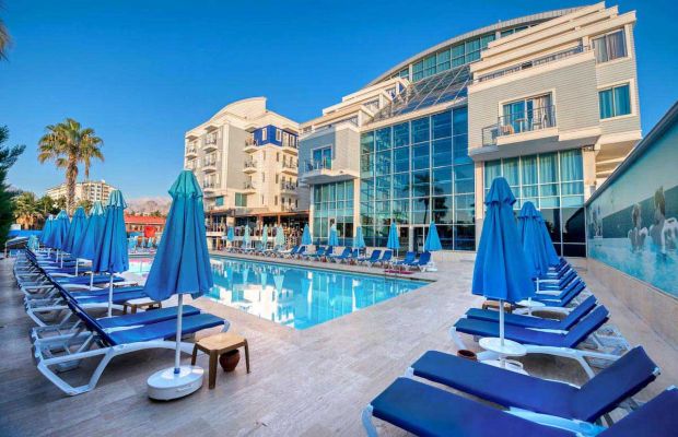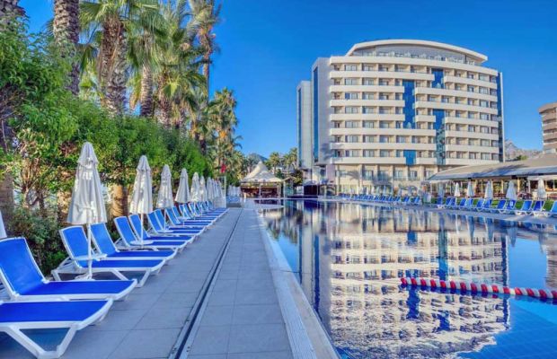 Śniadanie (7.00-10.00), późne śniadanie (10.00-10.30), obiad (12.30-14.00), kolacja (18.30-21.00) w formie bufetu w restauracji głównej, przekąski (12.00-15.00, 15.00-17.00): pizza turecka, hamburgery, lody w snack barze; napoje alkoholowe i bezalkoholowe w barach (10.00-24.00); raz na pobyt kolacja w wybranej restauracji á la carte (dla pobytów min. 7 nocy; wymagana wcześniejsza rezerwacja).
