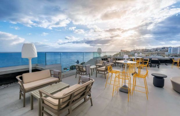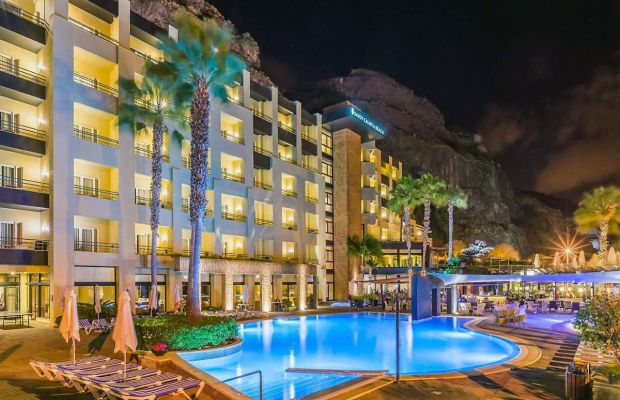 Hotel Baia Azul położony jest w miejscowości Funchal, 3 km od centrum (7 razy w tygodniu kursuje hotelowy autokar). Obiekt 10-piętrowy (3 windy), oferuje 215 pokoi. Oficjalna kategoria lokalna ****. Hotel usytuowany przy promenadzie, poniżej ulicy prowadzącej do miasta i powyżej morza, stanowi część rozszerzającej się dzielnicy hotelowej.