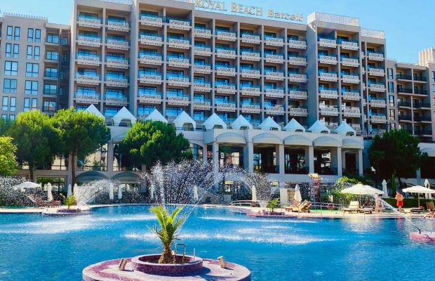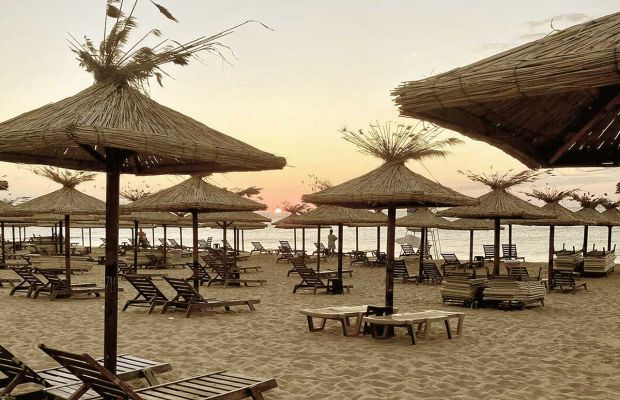 Publiczna, długa i szeroka, piaszczysta, łagodne zejście do morza, wyróżniona certyfikatem Błękitna Flaga, ok. 200 m od hotelu, przejście przez ulicę, parasole i leżaki płatne; sporty wodne (oferta zewnętrzna)