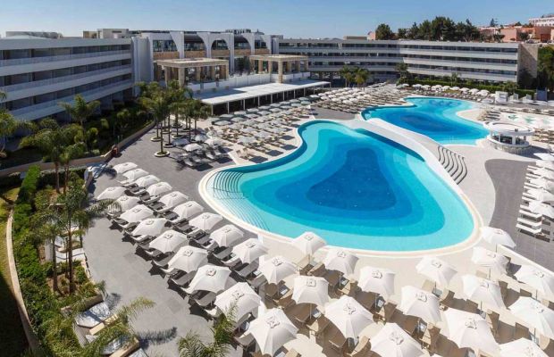 Hotel Sol Cosmopolitan położony jest w miejscowości Ixia (3 km od centrum), nad zatoką Trianta, 4 km od Ialyssos, 4,5 km od portu Rodos-Mandraki (możliwość rejsu do Marmaris w Turcji) i miasta Rodos, 15 km od lotniska Rodos-Diagoras. Komfortowy obiekt gruntownie wyremontowany w 2008 roku, składa się z dwóch trzy i sześciopiętrowych (2 windy) budynków głównych oraz 7 jednopiętrowych bungalowów. Hotel oferuje 377 pokoi. W pobliżu hotelu Sol Cosmopolitan (ok. 500 m) znajdują się liczne sklepy, restauracje, bary i dyskoteki. Dogodny dojazd do miasta Rodos komunikacją lokalną (przystanek 50 m od hotelu) lub taksówką.