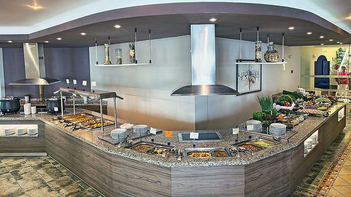 Opcje ze śniadaniem i obiadokolacją (half-board) lub all-inclusive: śniadanie (7.30-10.00), obiad (12.00-14.00), kolacja (18.00-21.00) w formie bufetu w restauracji głównej; przekąski (15.00-16.00), lokalne napoje bezalkoholowe i lokalne napoje alkoholowe w barze przy basenie i barze w lobby (18.00-22.00); piwo i wino w barze przy basenie i barze w lobby (10.00-18.00); kolacja w jednej z restauracji á la carte raz na pobyt (wymagana wcześniejsza rezerwacja).