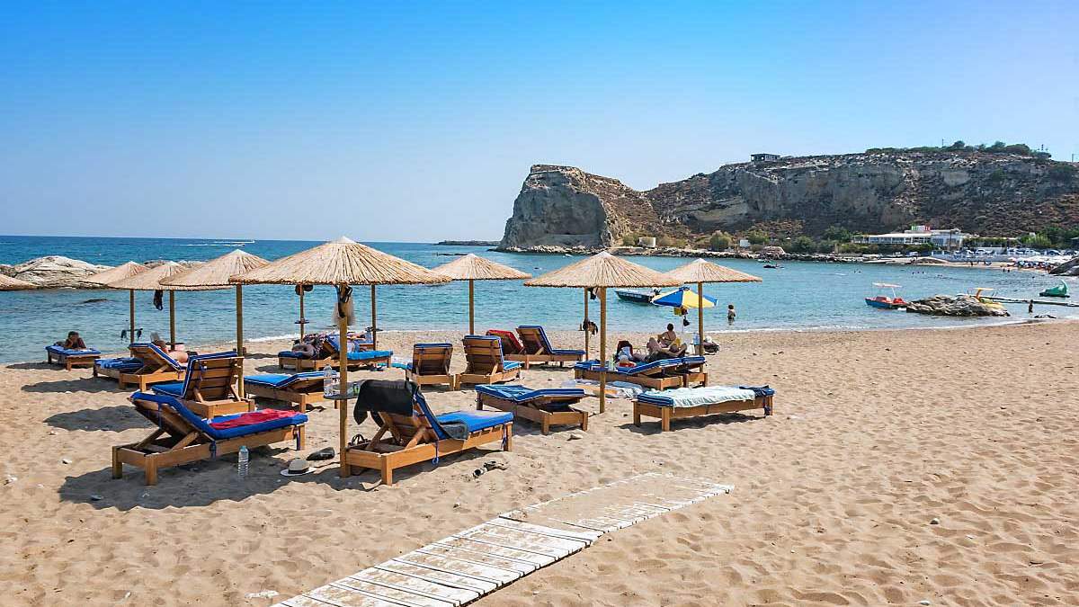 Ixia Beach, publiczna, żwirkowo-kamienista, łagodne zejście do morza, zalecane obuwie ochronne, ok. 50 m od hotelu, przejście przez ulicę, parasole, leżaki i ręczniki płatne (parasol i leżak/8 EUR), ręczniki za kaucją (ok. 5 EUR).