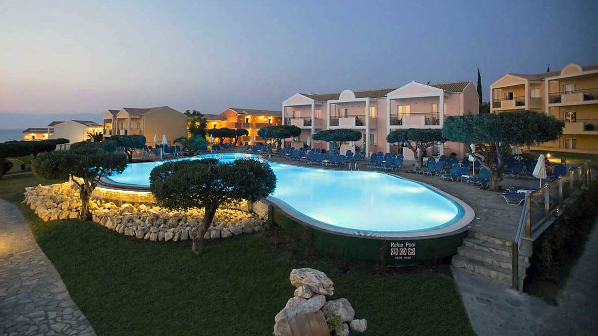 Hotel położony w miejscowości AGIOS SPIRYDON, ok. 500 m od sklepów i tawern; ok. 8 km od Kassiopi, ok. 5 km od Acharavi, ok. 35 km od stolicy Korfu; ok. 36 km od lotniska na Korfu; bus hotelowy (ok. 5 EUR/Acharavi, Kassiopi, ok. 15 EUR/Korfu, ok. 8 EUR/Sidari). Hotel czterogwiazdkowy, zbudowany w 2003 r., odnowiony w 2019 r., 381 pokoi, 17 budynków, 1-2 piętra.