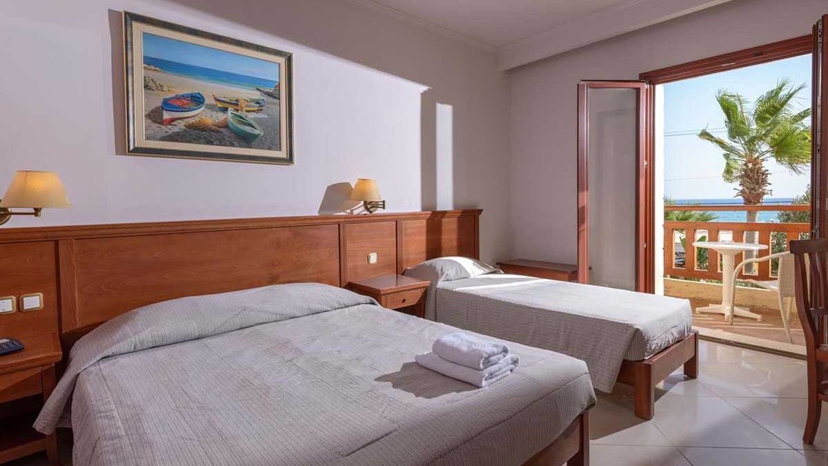Standard: 2-os. (możliwość 1 lub 2 dostawek), ok. 28-35 m2, zadbany, indywidualnie sterowana klimatyzacja, łazienka (wanna lub prysznic, wc; suszarka), telewizja satelitarna, polski program, telefon, lodówka; bezpłatne łóżeczko dla dziecka do 2 lat na zamówienie przed przyjazdem; balkon lub taras (stolik i krzesełka); pokój z 2 dostawkami za dopłatą.