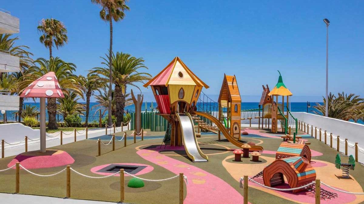 Matagorda, publiczna, długość ok. 800 m, szerokość do 40 m, piaszczysto-żwirkowa, ciemny piasek, łagodne zejście do morza, przy hotelu, przejście przez promenadę, parasole, leżaki i materace płatne.
