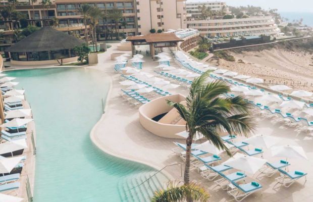 Playa de Jandia, publiczna, piaszczysta, ok. 800 m od hotelu, łagodne zejście do morza, wyróżniona certyfikatem Błękitna Flaga, dojście przez teren hotelu, przejście przez ulicę lub przejście podziemne, bezpłatny bus hotelowy kilka razy dziennie (częstotliwość kursów ustala hotel), parasole i leżaki płatne